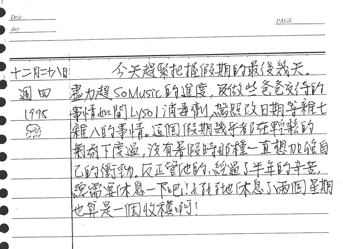 以下是30年前的今天(1995年12月28日)當時19歲的我所親筆寫下的日記: