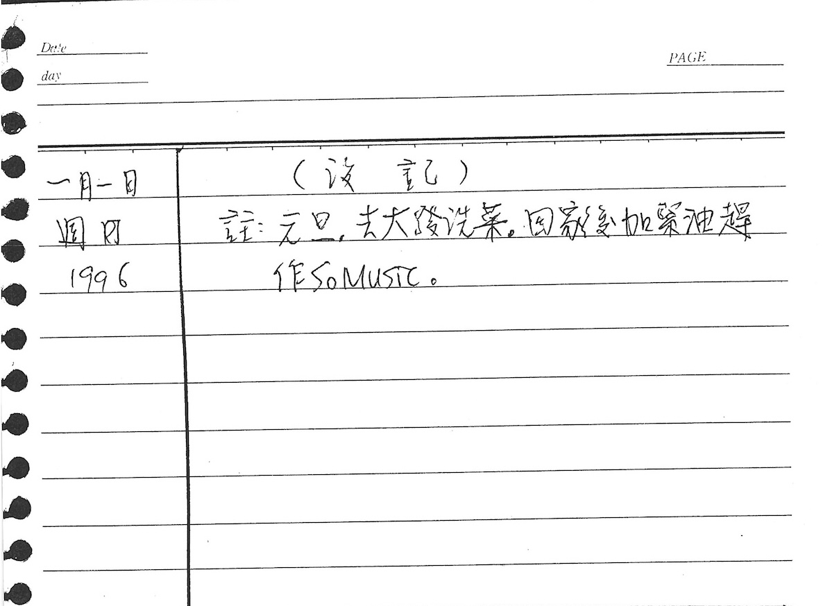 以下是30年前的今天(1996年1月1日)當時19歲的我所親筆寫下的日記: