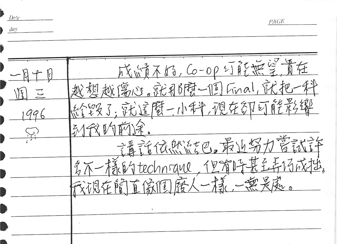 以下是30年前的今天(1996年1月10日)當時19歲的我所親筆寫下的日記: