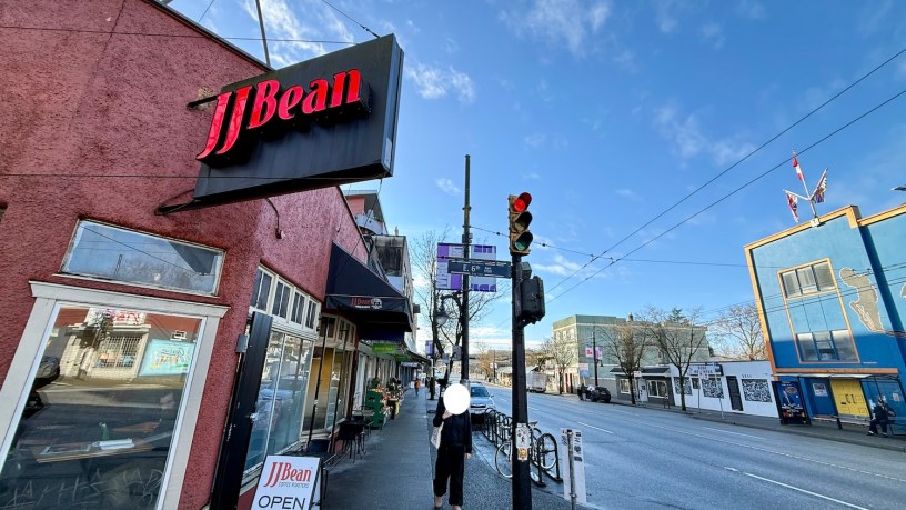 來JJBean見Jeff,地方在Broadway和Commercial間,原本好隊友留在家,後來天氣好,我們就興高采烈地一起出來。頭頂上的藍色天空靜放著一朵一朵雲非常鮮明可愛。