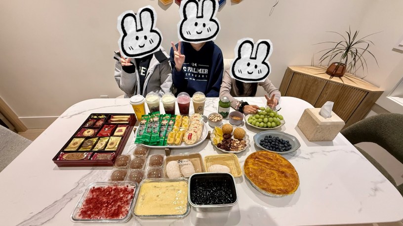 弟弟買所有火鍋料,我們帶高麗菜、茼蒿菜、一些菇類,「志彤稻盒」的杜拜巧克力一人一顆以及大芒果麻糬,一大份的西米露熱布丁。幫大家買他們最愛喝的囍茶。結果,在Richmond為了「蒐買」以上這些,跑了三個小時,才把東西全部拿完。印象深刻是在囍茶裡面一坐就是40幾分鐘才等到六杯飲料,西米露布丁拜訪了兩次才取得。此時外面的雨已下了很大,讓這裡農曆新年感覺特別的蕭瑟,餐館裡聽到不同口音的中文在買東西,有台灣的、大陸的,廣東話,還聽到隔壁一家人一直講上海話或某種方言。大家都在過年。
