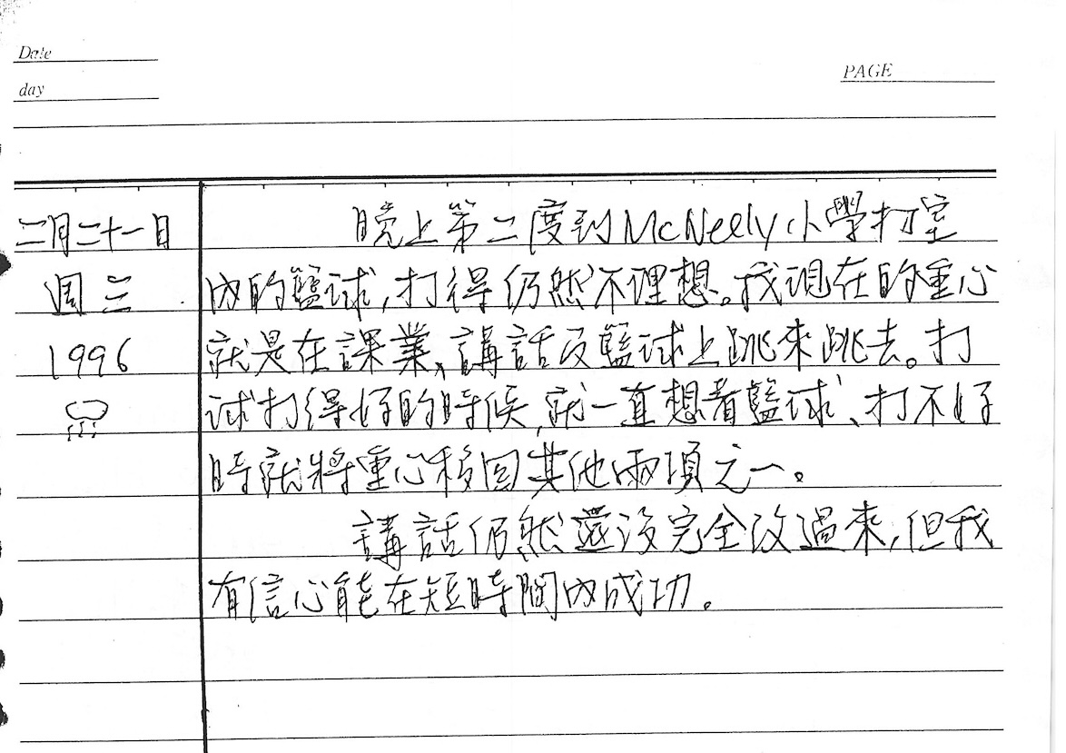 以下是30年前的今天(1996年2月21日)當時19歲的我所親筆寫下的日記: