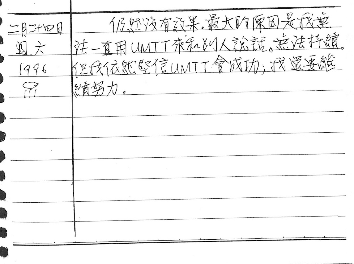 以下是30年前的今天(1996年2月24日)當時19歲的我所親筆寫下的日記: