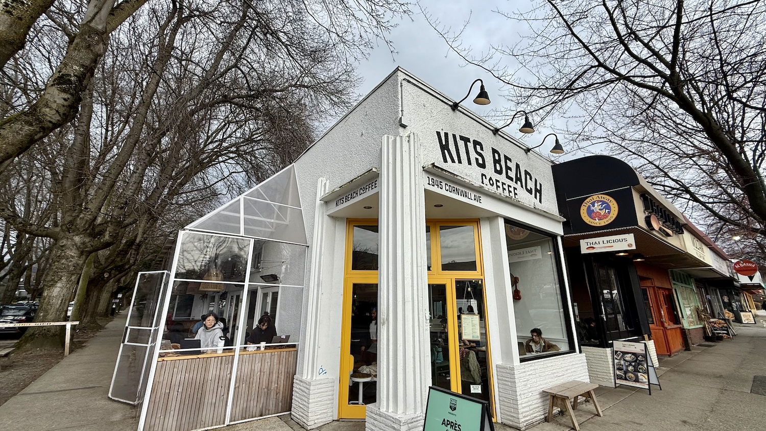 中午之前就來到了位於Cornwell上面的Kits Beach Coffee附近,提早到一個半小時到,這路叫Walnut,盡是Kitsilano標準住宅,皆窄且高,蓋起來都像是美術館,全玻璃,不怕人看,也從不謙虛的;這裡路邊都可以付費停車,不會只給居民。停好車在這巷內小睡半小時,是真的有睡著的。起來以後,走上路,抬頭見被樹枝切割了的天空,烏雲蠻高的,在極高處的天上層層疊疊的起來很美,不會下雨。