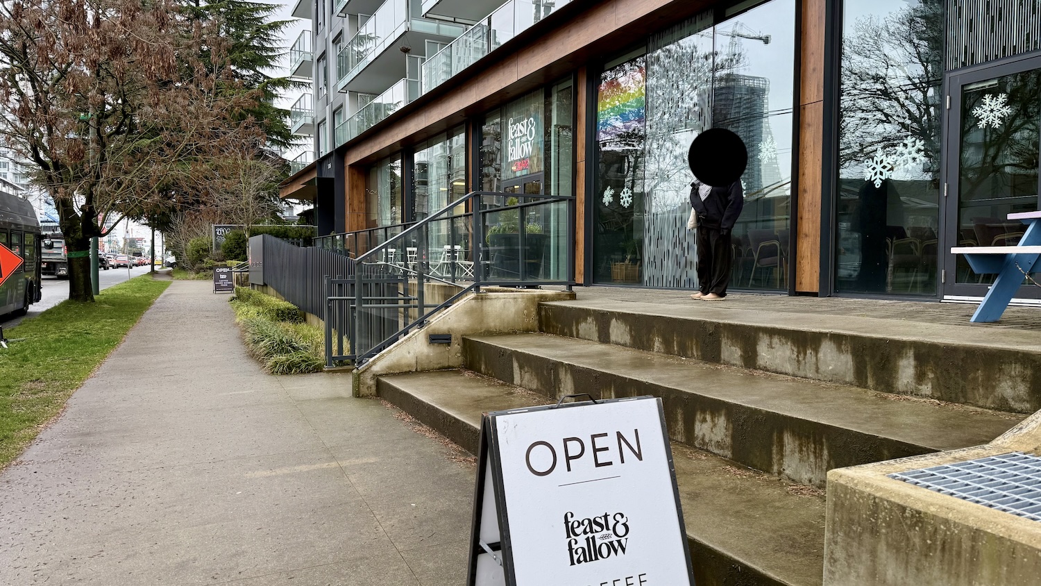 和好隊友、妹妹,今天由好隊友開車,模擬路線,參觀了在Second Narrow Bridge橋下沒多遠的、位於Dollarton工業區的辦公室,再到Stong超市上洗手間,上小山到Capilano College想找它圖書館但下起了溫哥華式的森林夜雨,停車場滿滿的,先到South Castle吃中飯,再去交貨鍋子、向住在東區老房地下室的菲律賓女士拿了320加元,就來到Feast and Farrow,我們三人坐著工作。