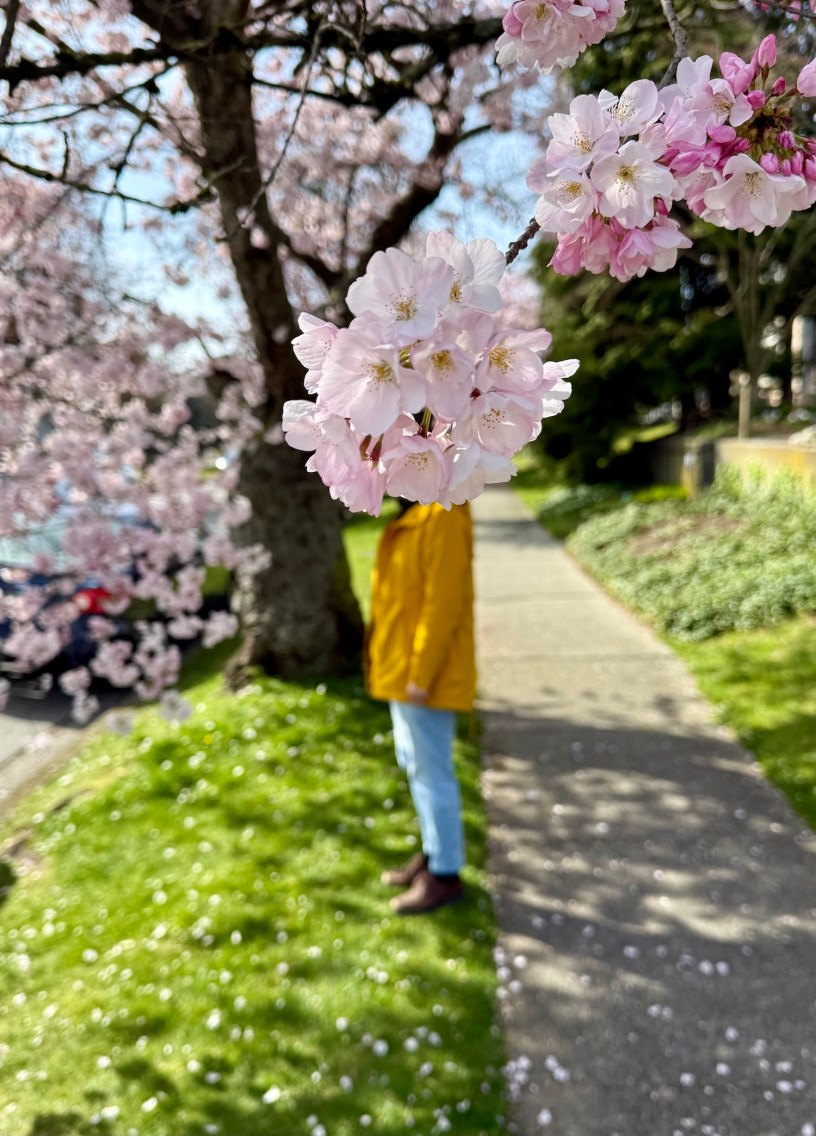 來到Ash和64街看櫻花,他們說這裡櫻花八成已開,再到68街是全開的。聽到了蜂鳥的急脆的「啾!啾!」的叫聲,我又聞到櫻花一點點的香。