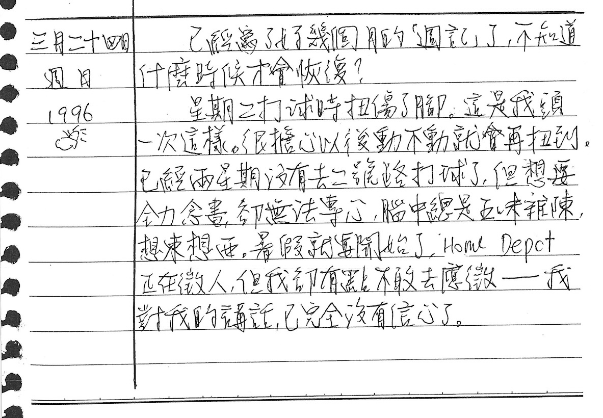 以下是30年前的今天(1996年3月24日)當時19歲的我所親筆寫下的日記: